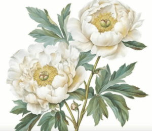 Solo il bianco fiore della peonia conserva il suo candore, accentuandolo anzi ancora di più come se assorbisse la luce lunare.